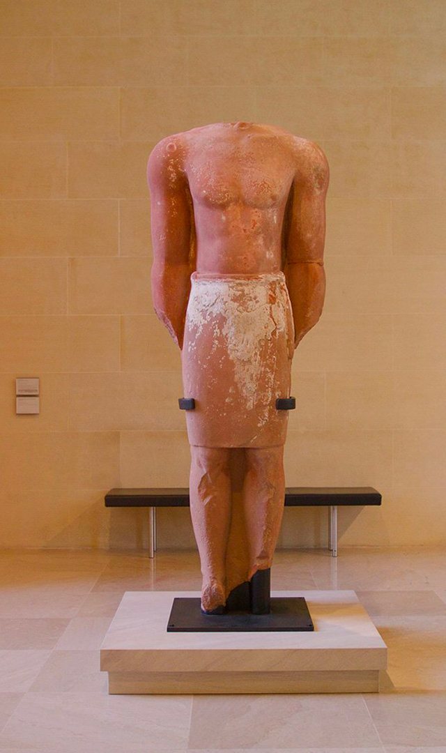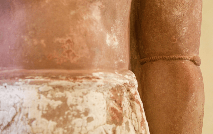 It was during archaeological excavations carried out between 2005 and 2007 by King Saud University that an immense sandstone statue, dated between the 5th and 3rd centuries BC, was discovered in the sanctuary of Dadan. We can see a male figure, standing in a static frontal pose, arms aligned along the body. Although incomplete (the head is missing), the sculpture is nonetheless impressive. Measuring more than two meters, it probably represents a king – if not a priest or a praying figure - of the ancient kingdom of Lihyan. The detailed treatment of the muscles of the torso or the abdomen testifies to a remarkable craftsmanship, characteristic of Lihyanite statuary. Its style, eminently original for the region, reflects the beginning of the artistic influence of Egypt, ancient Greece or the Middle East. Similar statues have already been exhibited in Paris as part of the AlUla, wonder of Arabia exhibition, organized in 2019 at the Institut du monde arabe (IMA).