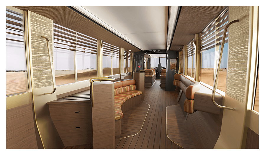 the main tourist sites (Old Town, Dadan, Jabal Ikmah, Hegra) and function as an attractive means of transport for visitors in and of itself.