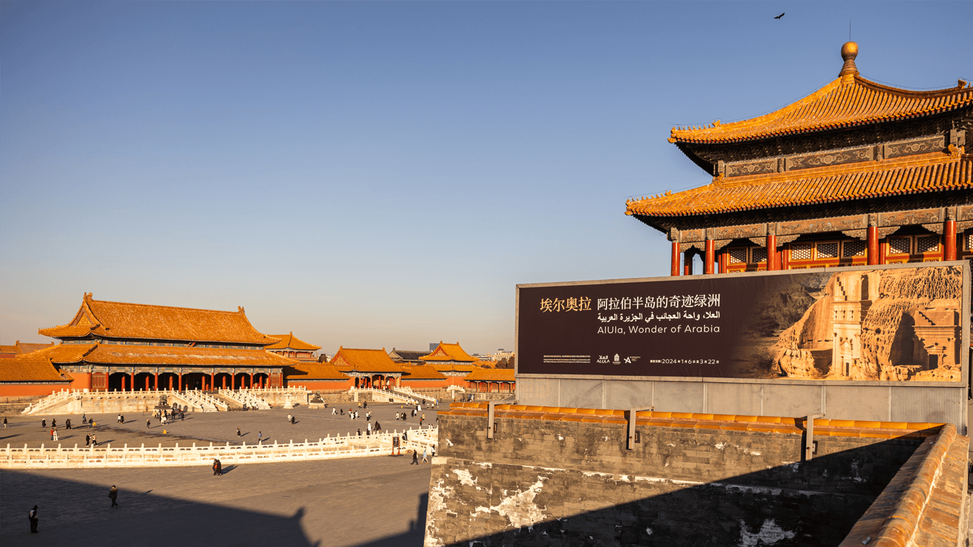 On January 5, 2024, the exhibition was inaugurated at the Palace Museum in the Forbidden City, Beijing, in the presence of Wang Xudong, director of the museum, Abdulrahman bin Ahmed Al-Harbi, Ambassador of Saudi Arabia to China and Ludovic Pouille, Ambassador of France to Saudi Arabia.