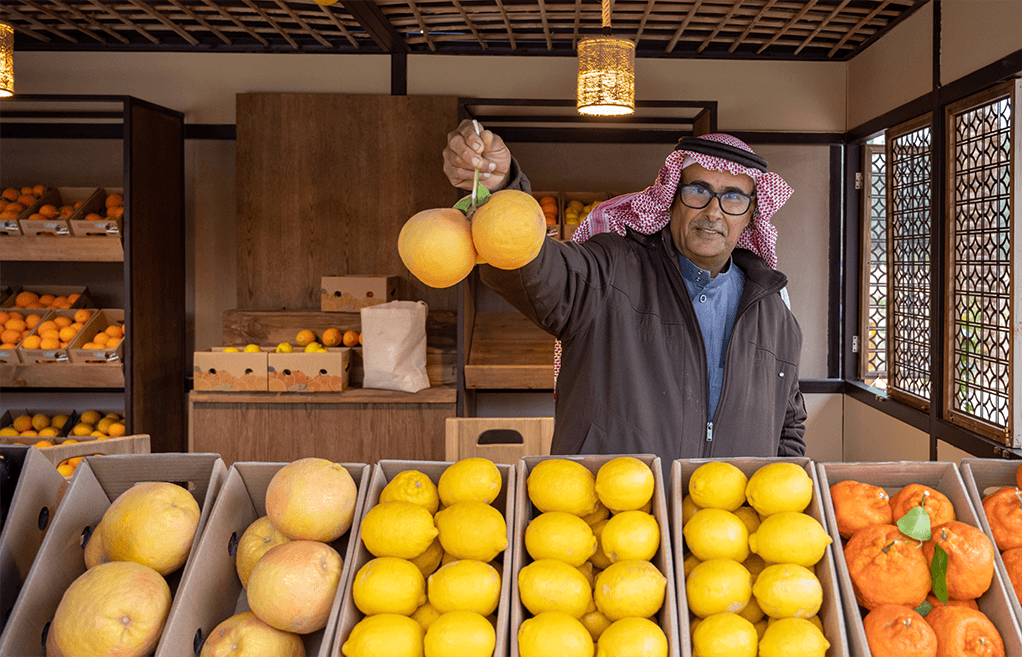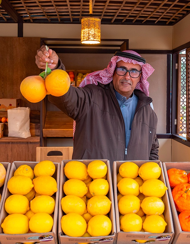 The giant grapefruit, locally called Pumali, is notable for its size, with two distinct varieties cultivated in the region. However, like the citron, it remains marginal in AlUla’s gastronomy.