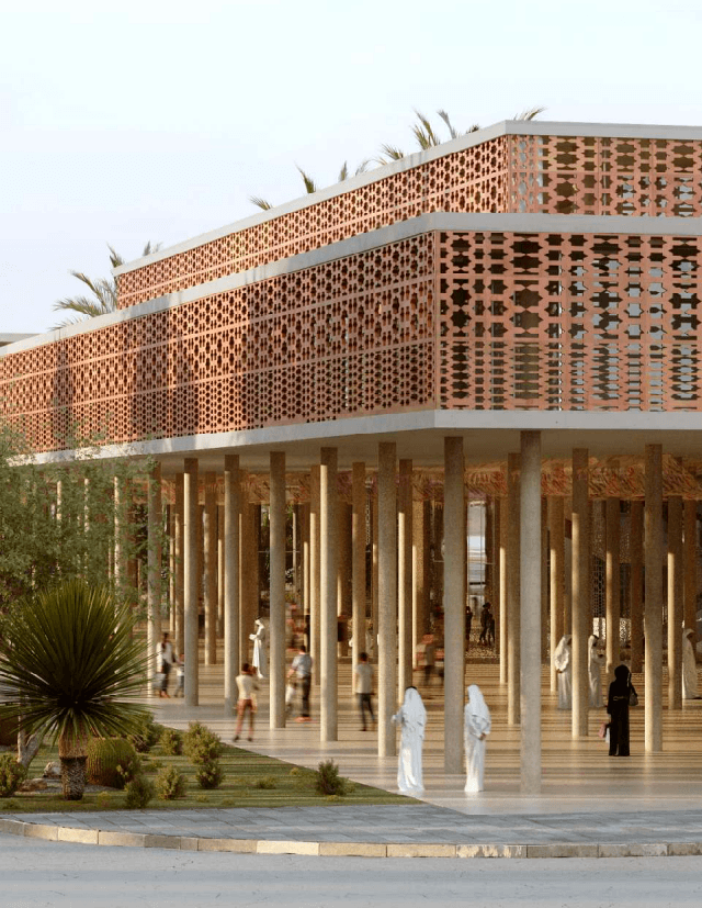 La durabilité inspire également la création contemporaine. Initiées par la RCU et AFALULA, les résidences d’artistes sont conçues pour expérimenter des principes d’éco-conception, qu’il s’agisse de modules démontables, de valorisation des déchets de l’agriculture, de matériaux locaux ou réemployés, ou encore de la fin de vie des œuvres. Dans ce contexte unique, mêlant la richesse de l’oasis aux contraintes de certaines ressources comme l’eau, ces pratiques font d’AIUIa un laboratoire de création régénérative. Les grands projets culturels suivent la même logique : le futur musée d’art contemporain et le site Wadi Al Fann font l’objet d’évaluations et d’accompagnement en matière de performance environnementale.